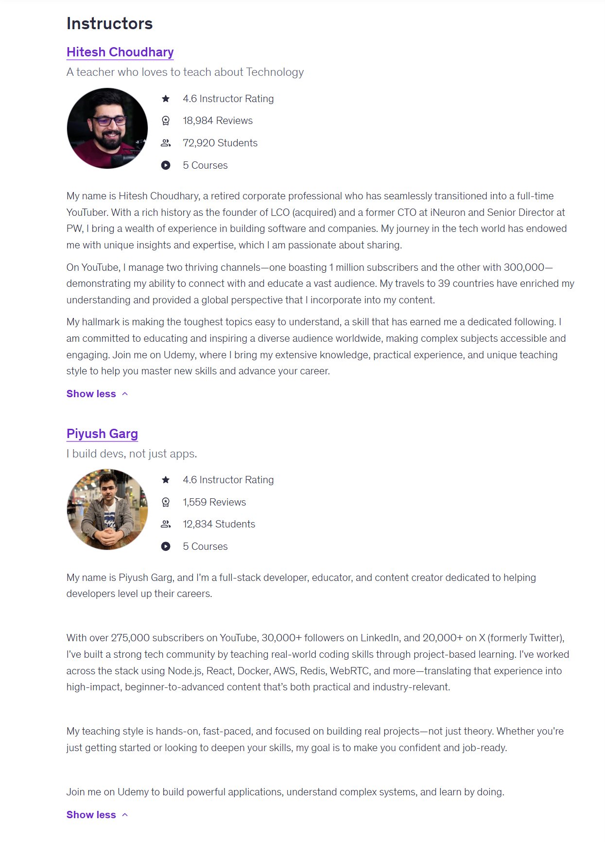 - Instructors: Hitesh Choudhary & Piyush Garg